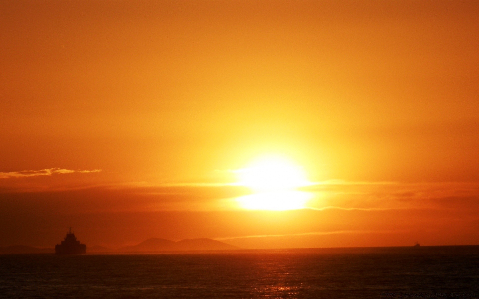 Ein brennender Sonnenuntergang geht über den Horizont hinaus