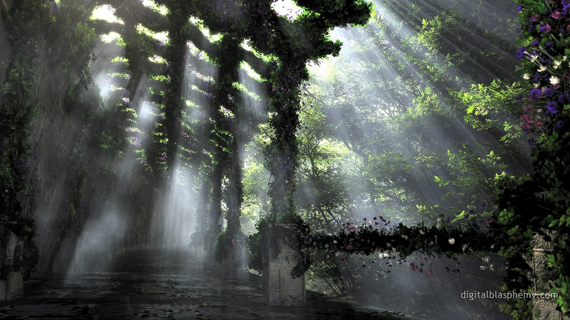 3-d-Grafik eines verlassenen Schlosses im Sonnenlicht