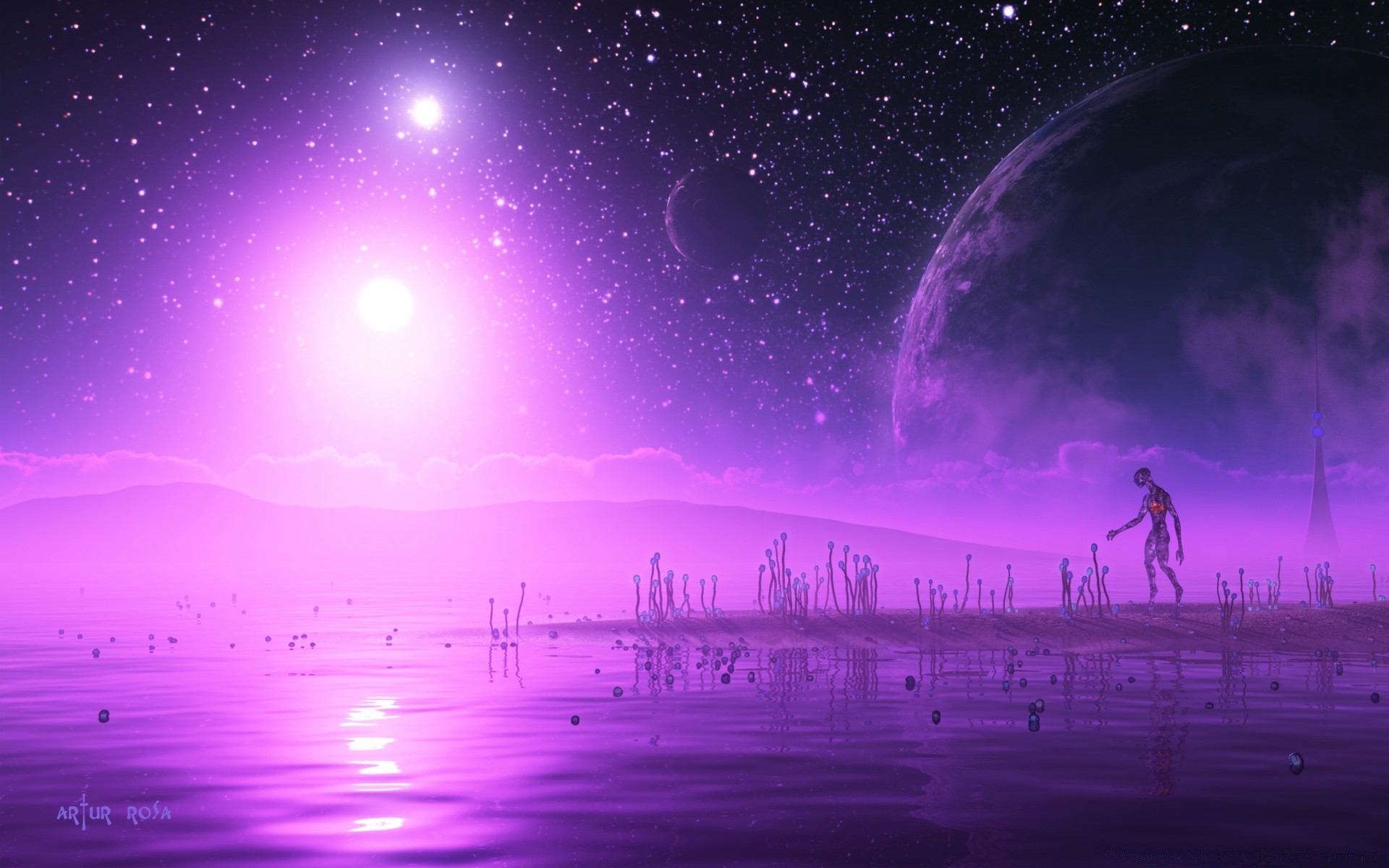 Einsamer Wanderer vor dem Hintergrund des Mondhimmels