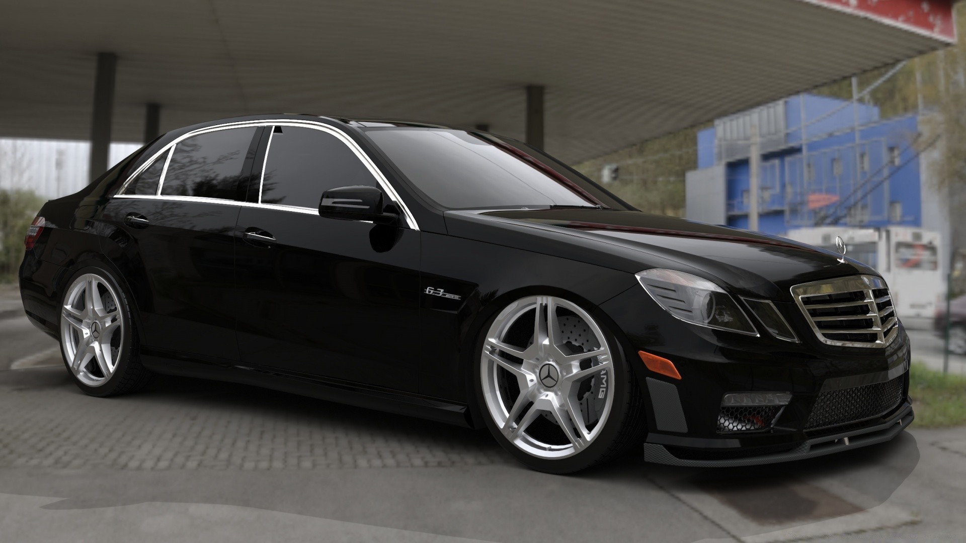 3d-Grafik, ein Auto, das unter einem Baldachin im Hof des Hauses steht