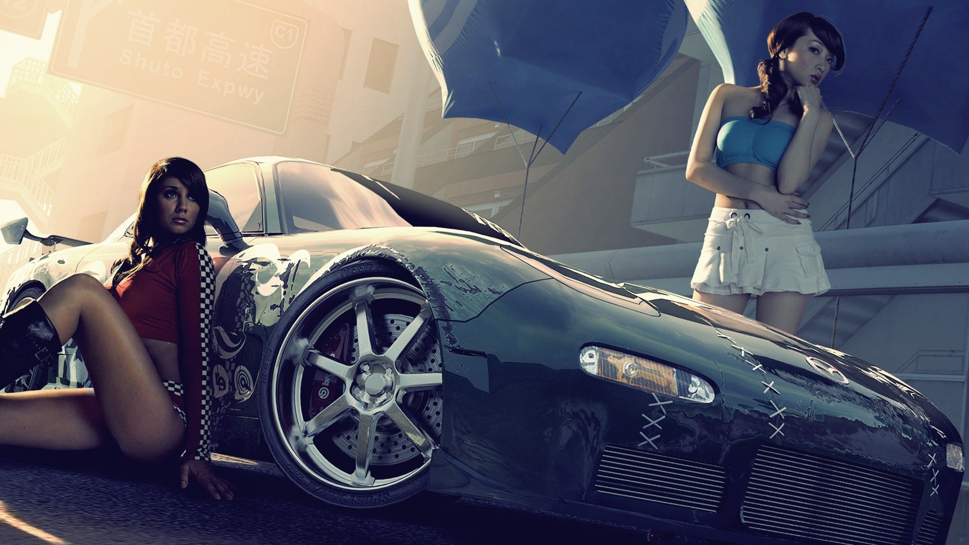 Mädchen auf dem Hintergrund einer Katastrophe in einem Computerspiel