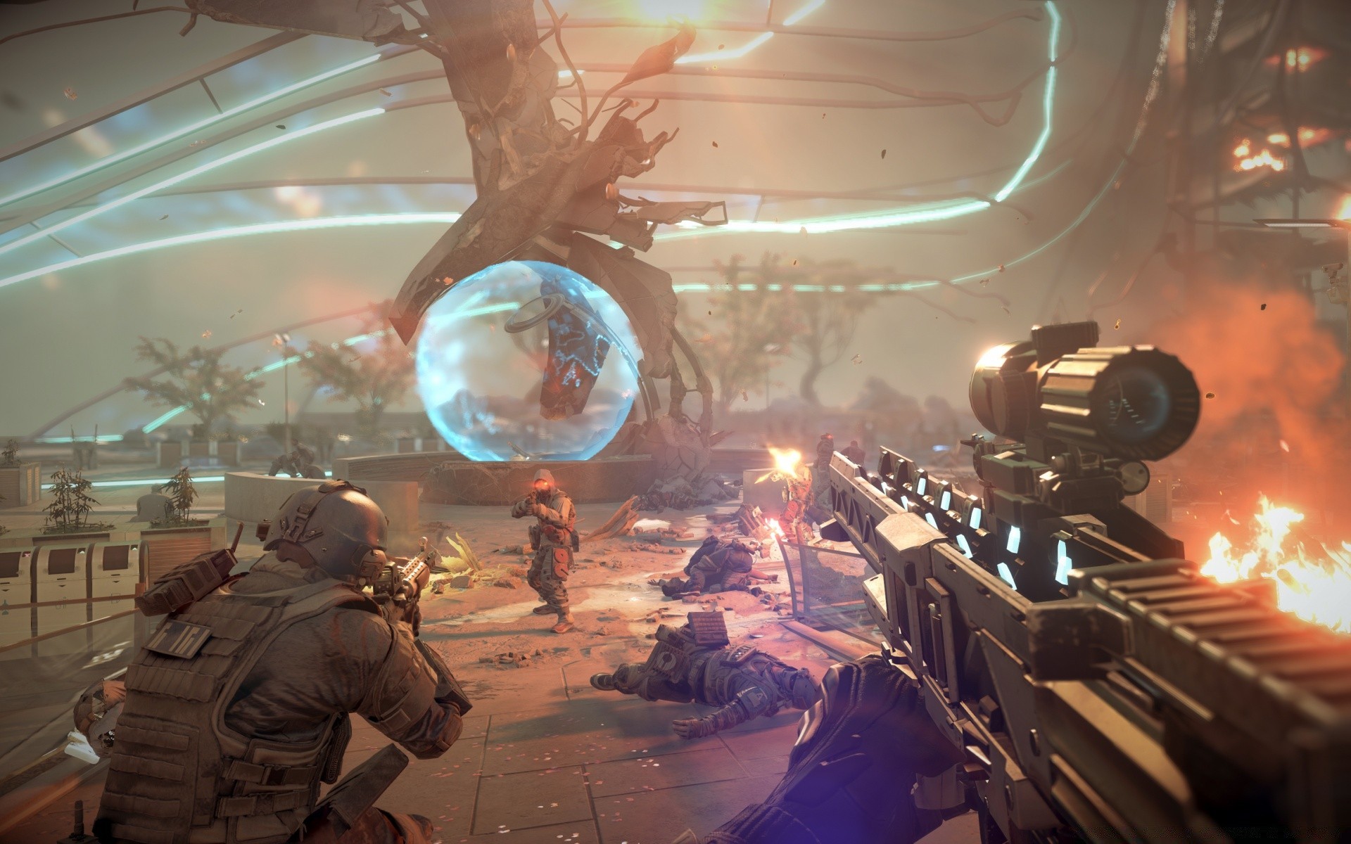 Schuss aus dem Spiel killzone Mann mit Helm mit Waffe