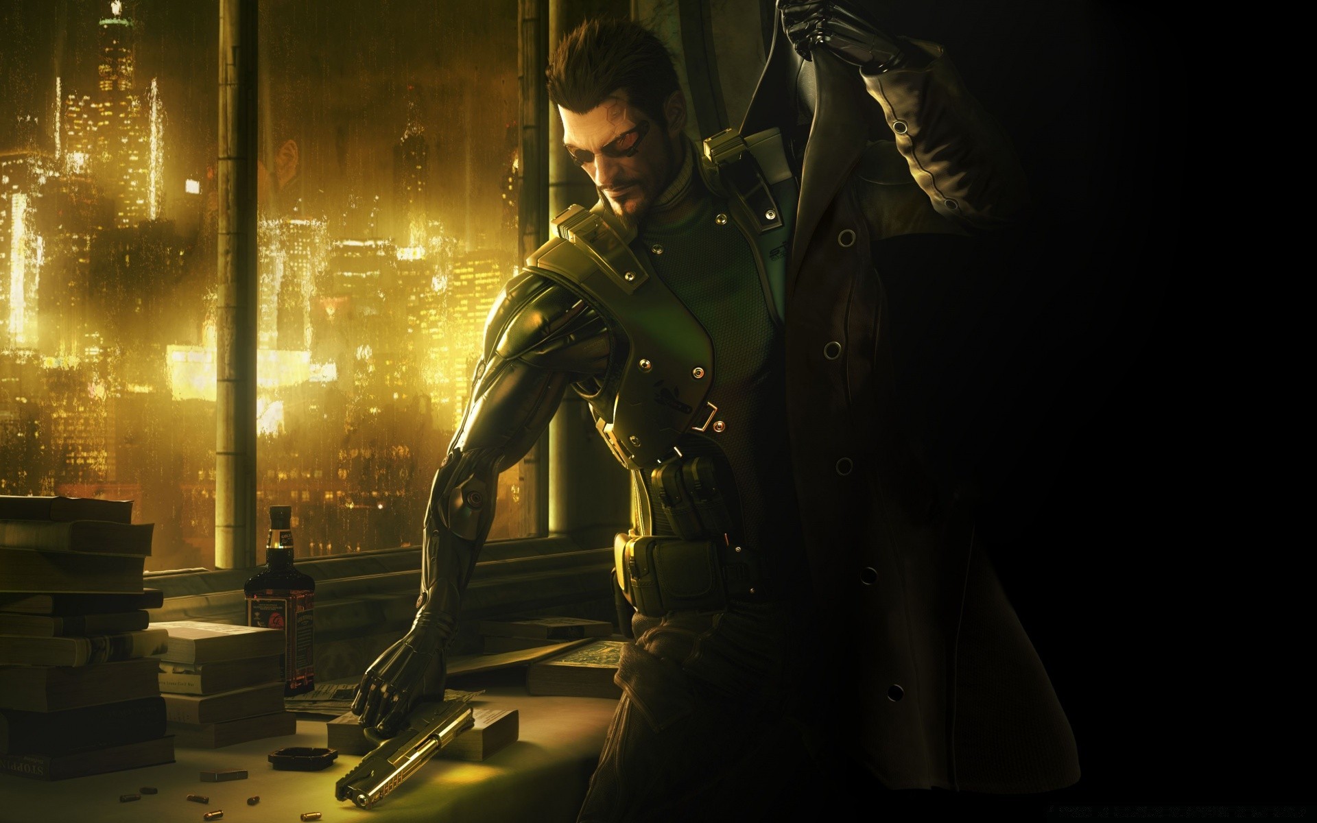 Vor dem hintergrund der nachtstadt mit einer pistoleVor dem Hintergrund der Nachtstadt mit einer Pistole