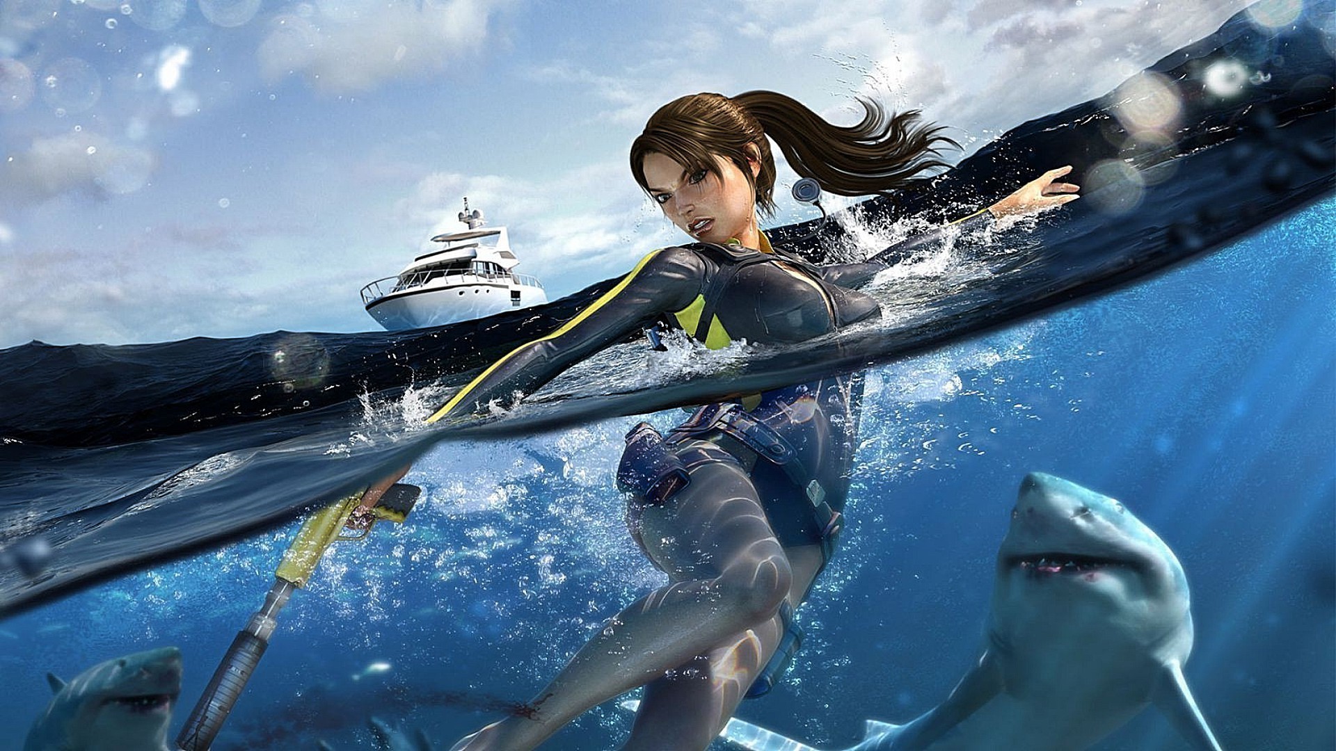 Die Heldin des Spiels im Kampf mit Haien