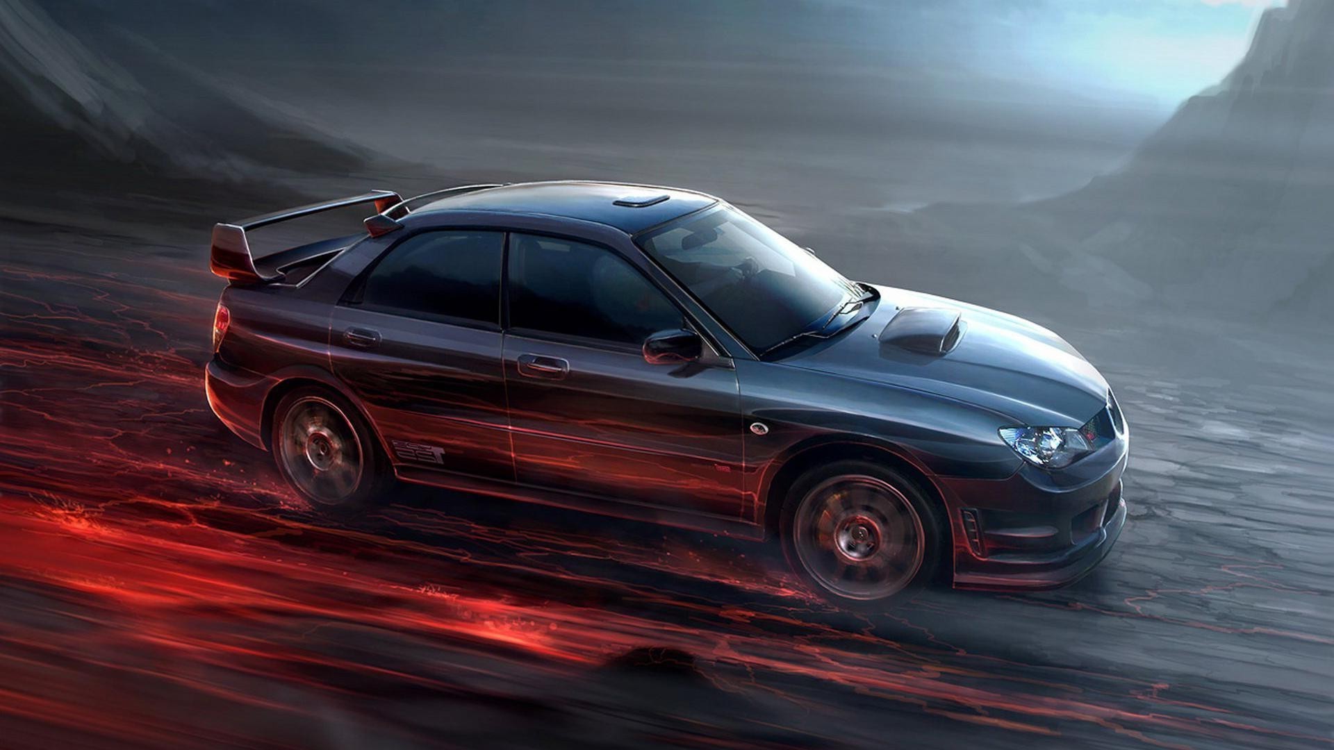 Sportwagen auf dem Hintergrund des Abendhimmels