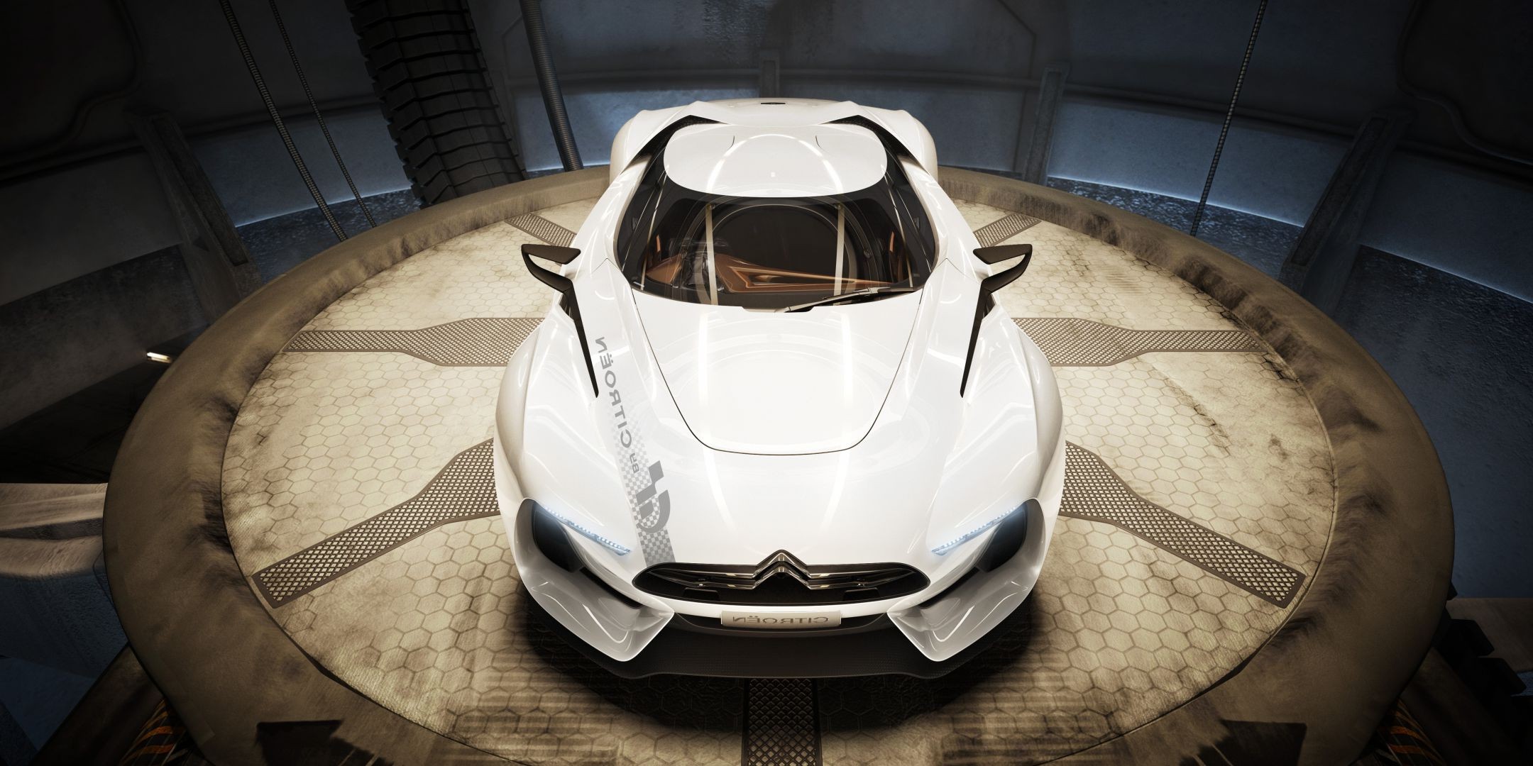Sportwagen auf dem Hintergrund der schönen Landschaft