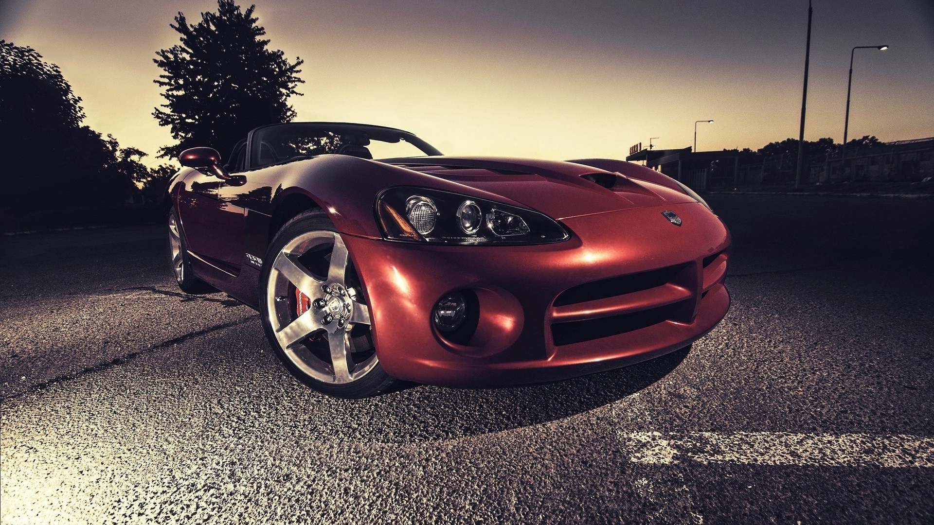 Roter Sportwagen vor dem Hintergrund der Prärie