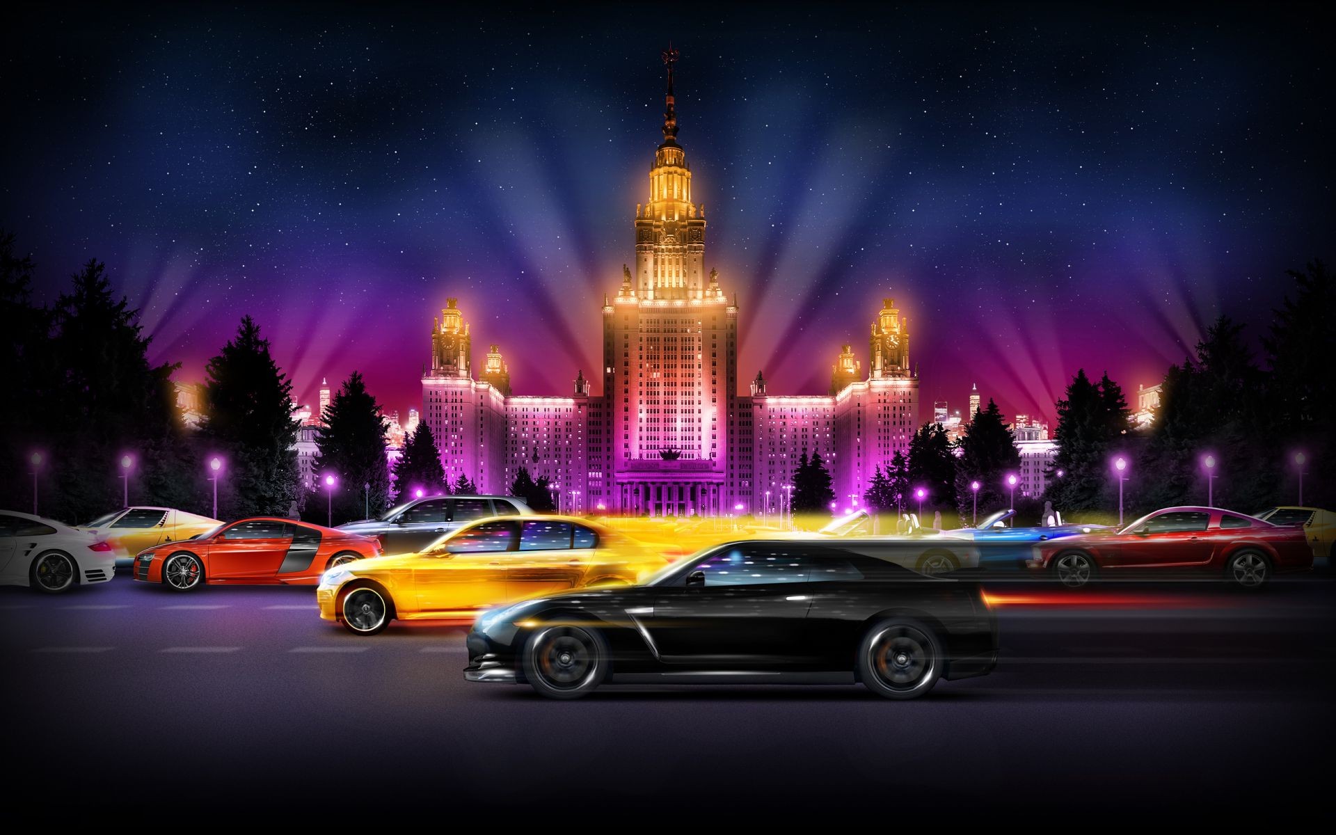 Weißer Sportwagen auf schwarzer Spiegelfläche