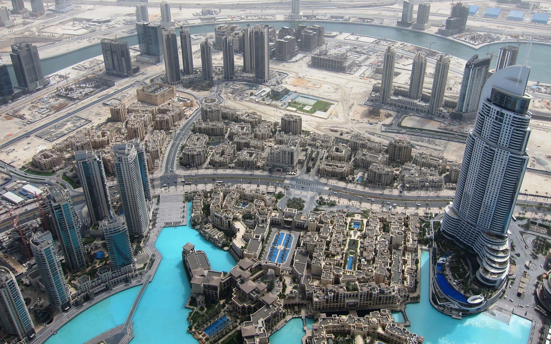 Die Architektur der Stadt ist wegen der Bäume sichtbar