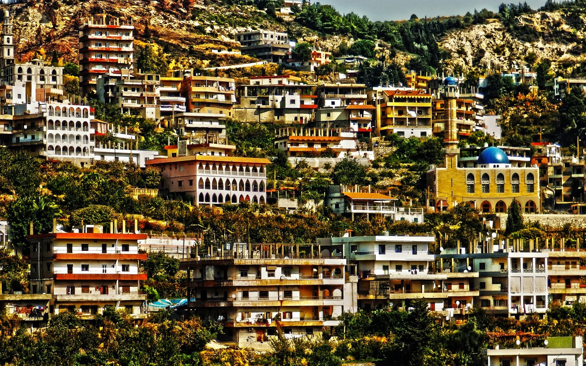 Eine stadt in amerika ist schwarz und weiß auf einem orangefarbenen himmelshintergrundEine Stadt in Amerika ist schwarz und weiß auf einem orangefarbenen Himmelshintergrund