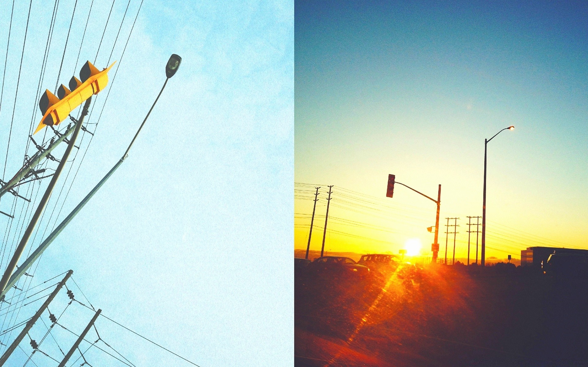 Der Himmel mit dem Sonnenuntergang auf dem Hintergrund der Eletrizität