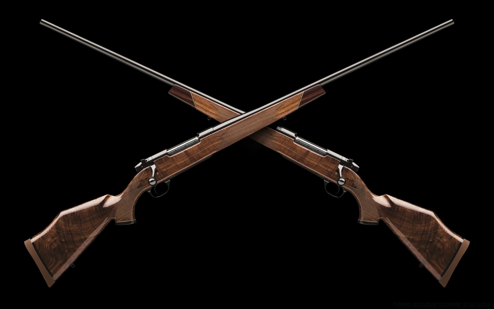 Zwei Jagdgewehre auf schwarzem Hintergrund