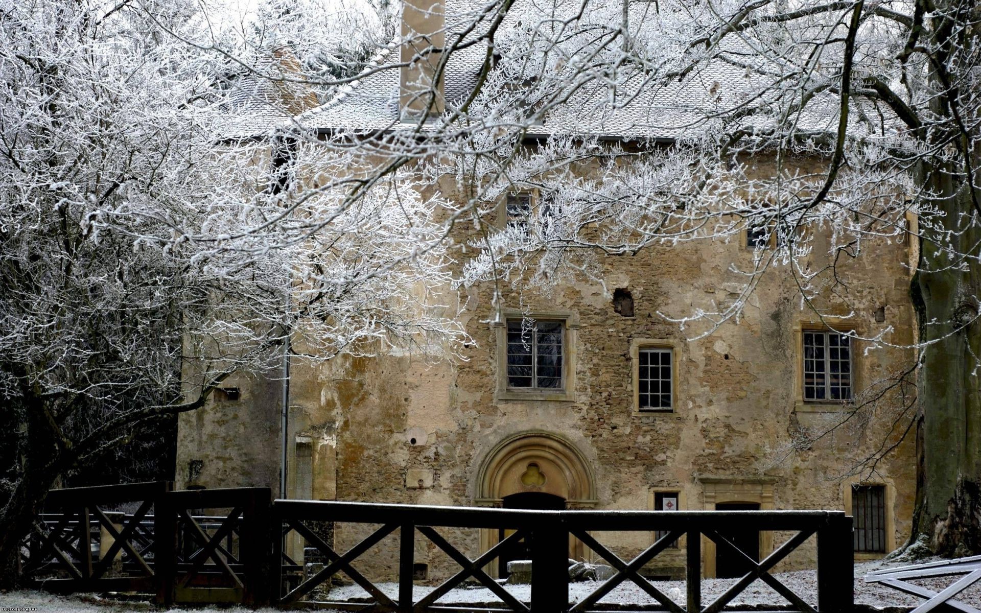 Die Bäume sind alle mit Blumen wie Schnee bedeckt