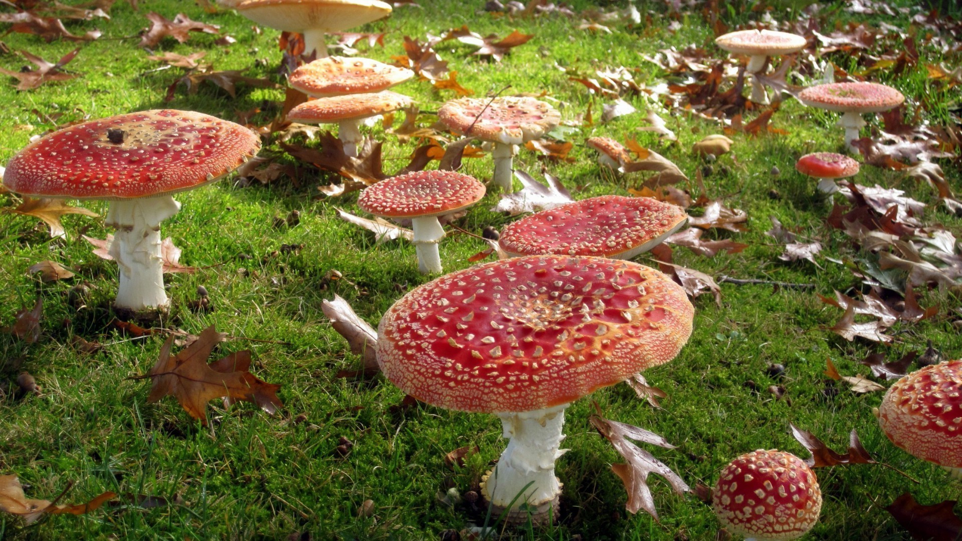 Zwei Fliegenpilze im Herbst auf einer Lichtung