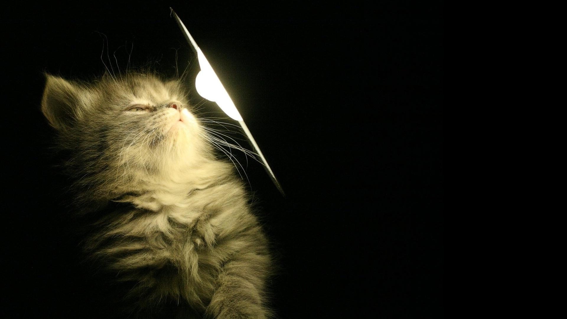 Ein Kätzchen, das auf eine Glühbirne schaut