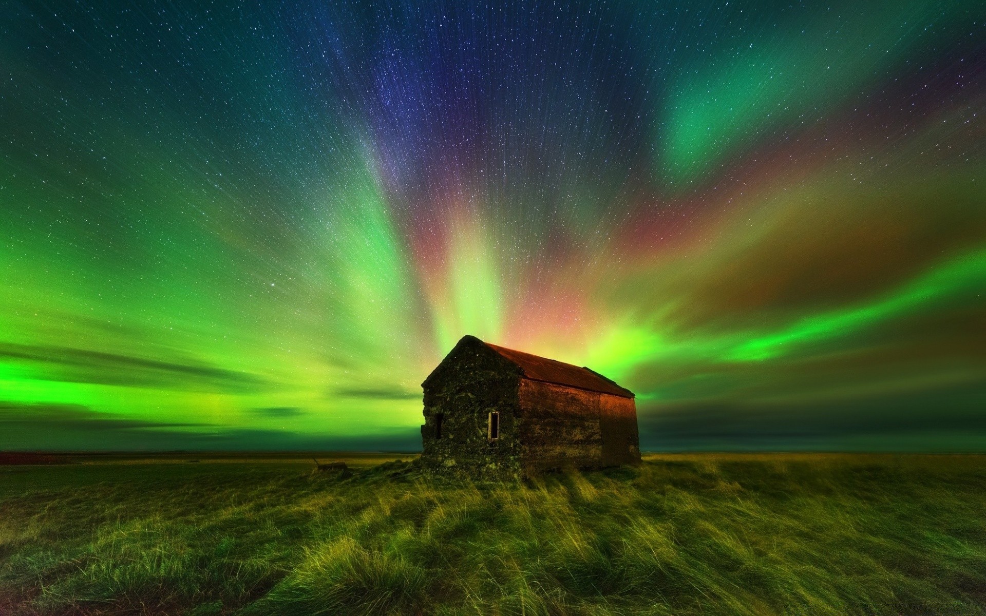 Fantastisches Bild: Der Wald, die Berge und der Planet darüber