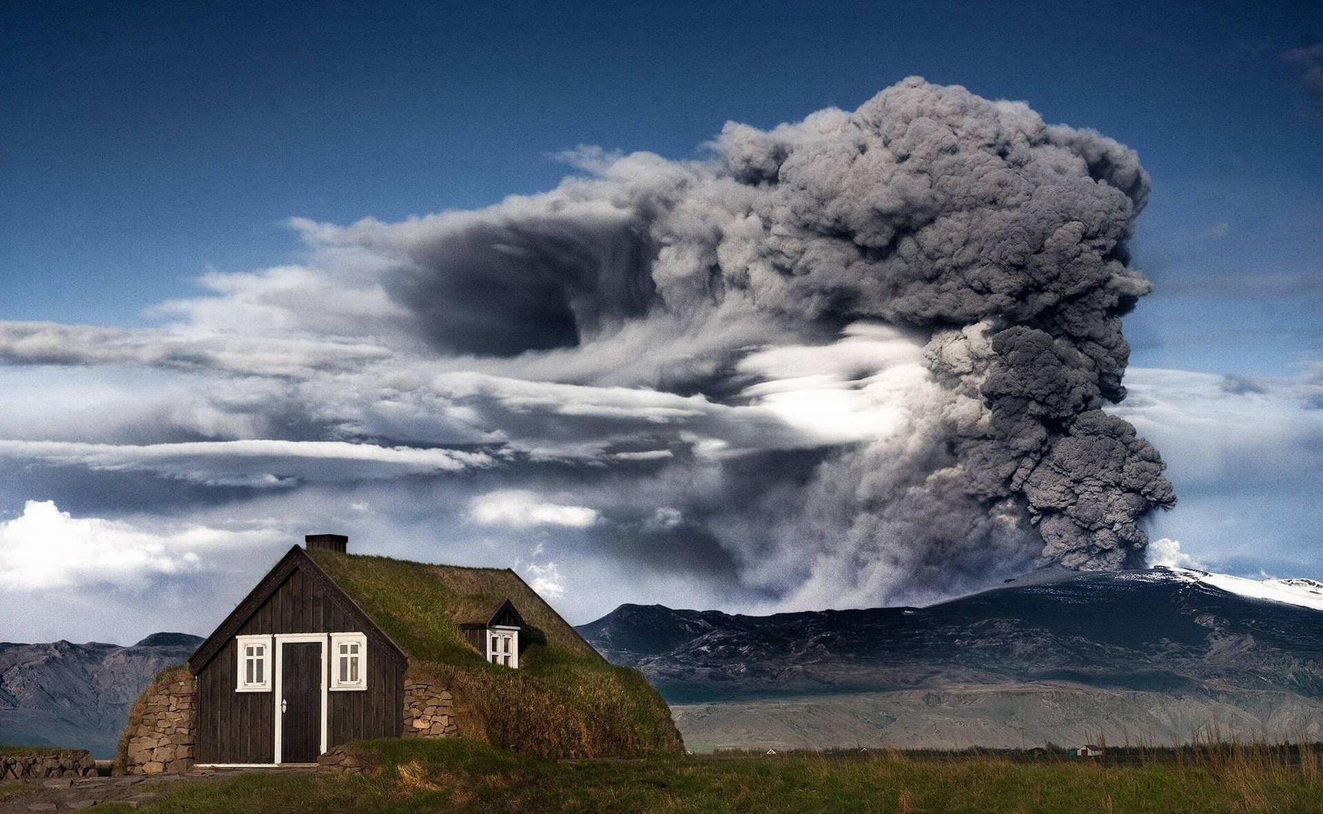 Vulkanische landschaft vor dem hintergrund der untergehenden sonneVulkanische Landschaft vor dem Hintergrund der untergehenden Sonne