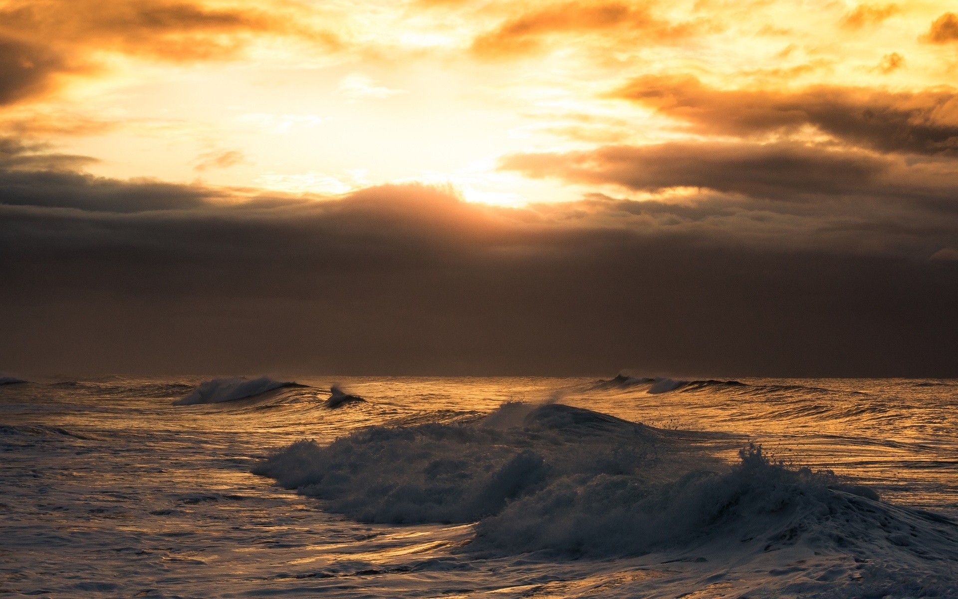 Atemberaubende dämmerung am strand des aufregenden meeresAtemberaubende Dämmerung am Strand des aufregenden Meeres