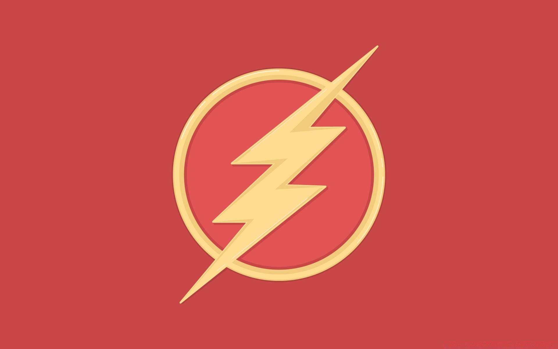 Gelber Blitz im gelben Kreis auf rotem Hintergrund Emblem