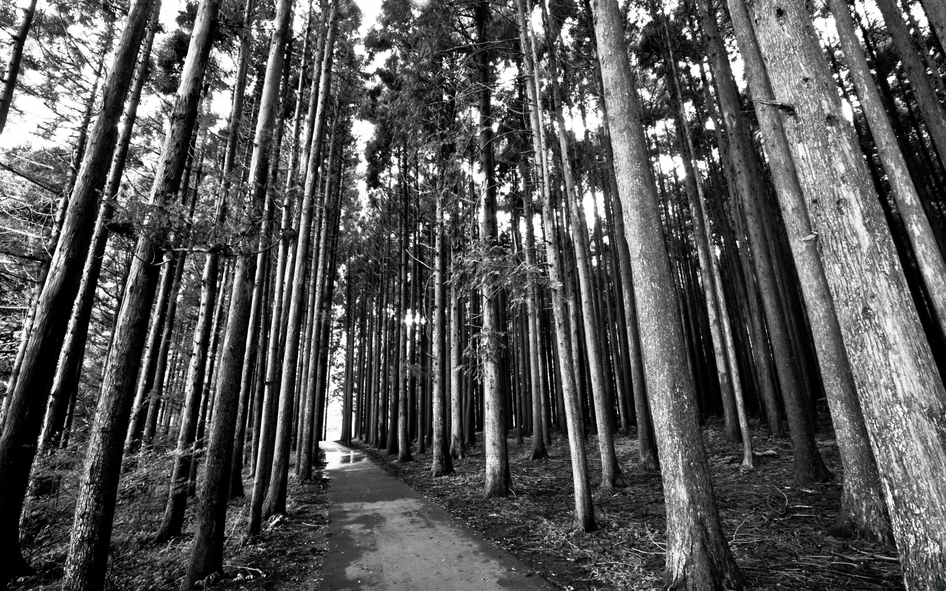 Schwarz-Weiß-Illustration einer Landschaft mit Bäumen