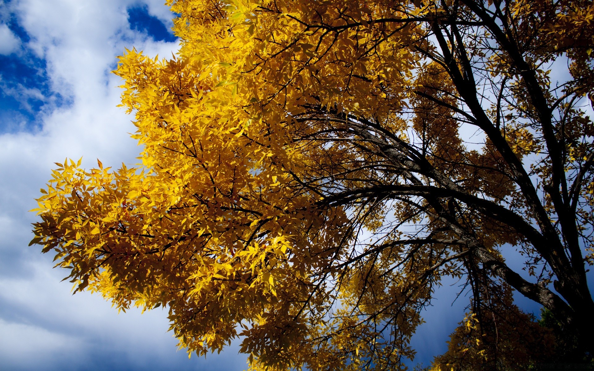 Gelbe Blätter der Bäume auf Himmelshintergrund