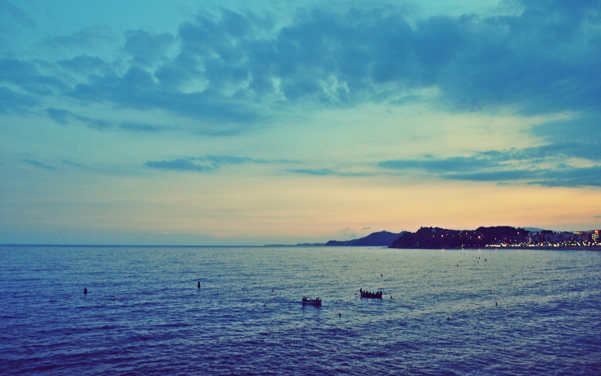 Liegeplatz in der nähe der flachen oberfläche des sees bei sonnenuntergangLiegeplatz in der Nähe der flachen Oberfläche des Sees bei Sonnenuntergang
