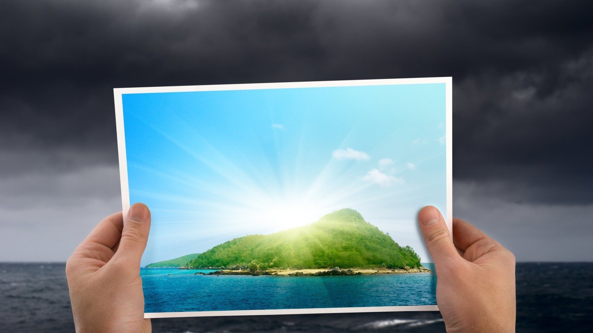 Geheimnisvolle Insel auf dem Computerbildschirm