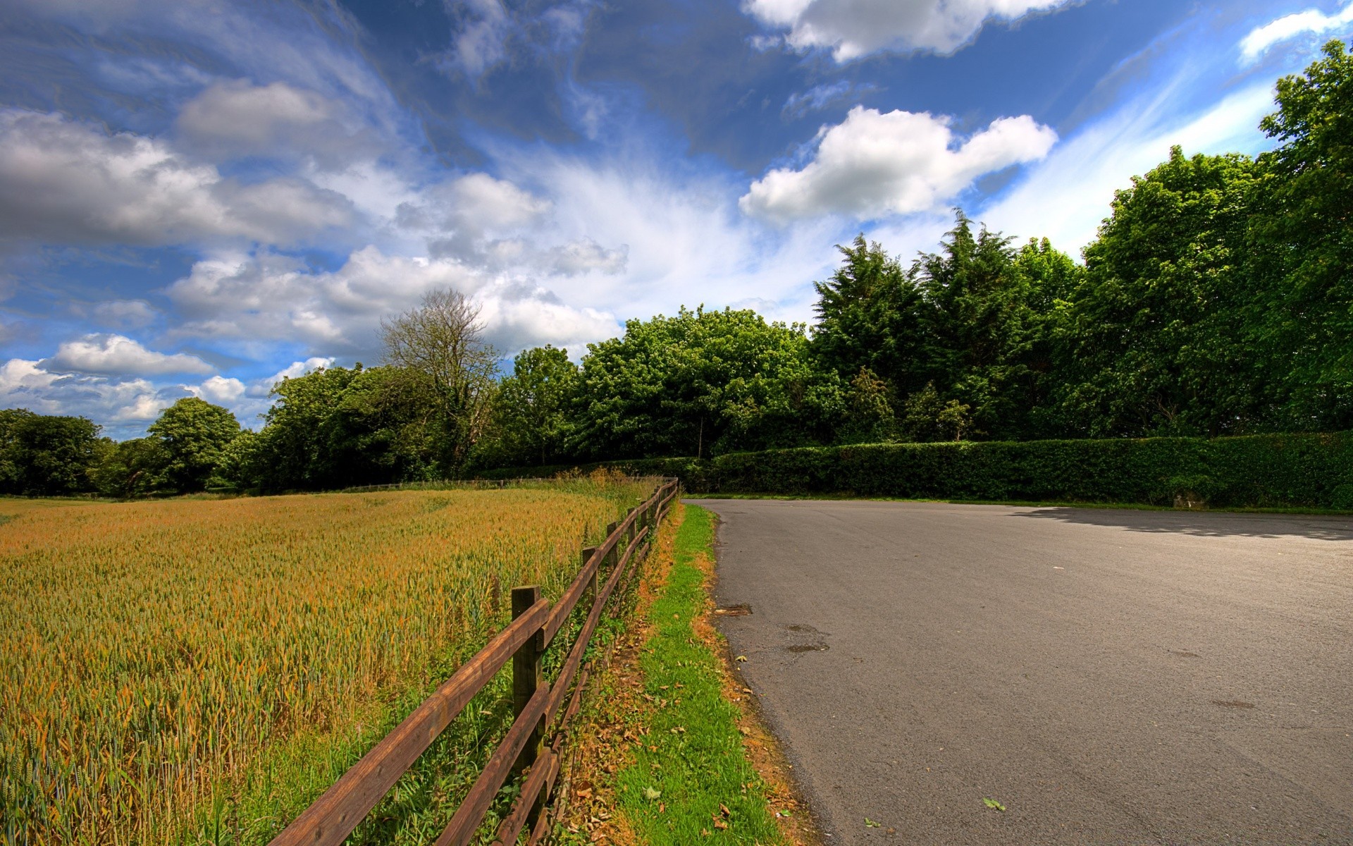Die Landstraße ist in Felder und Wälder eingedrungen