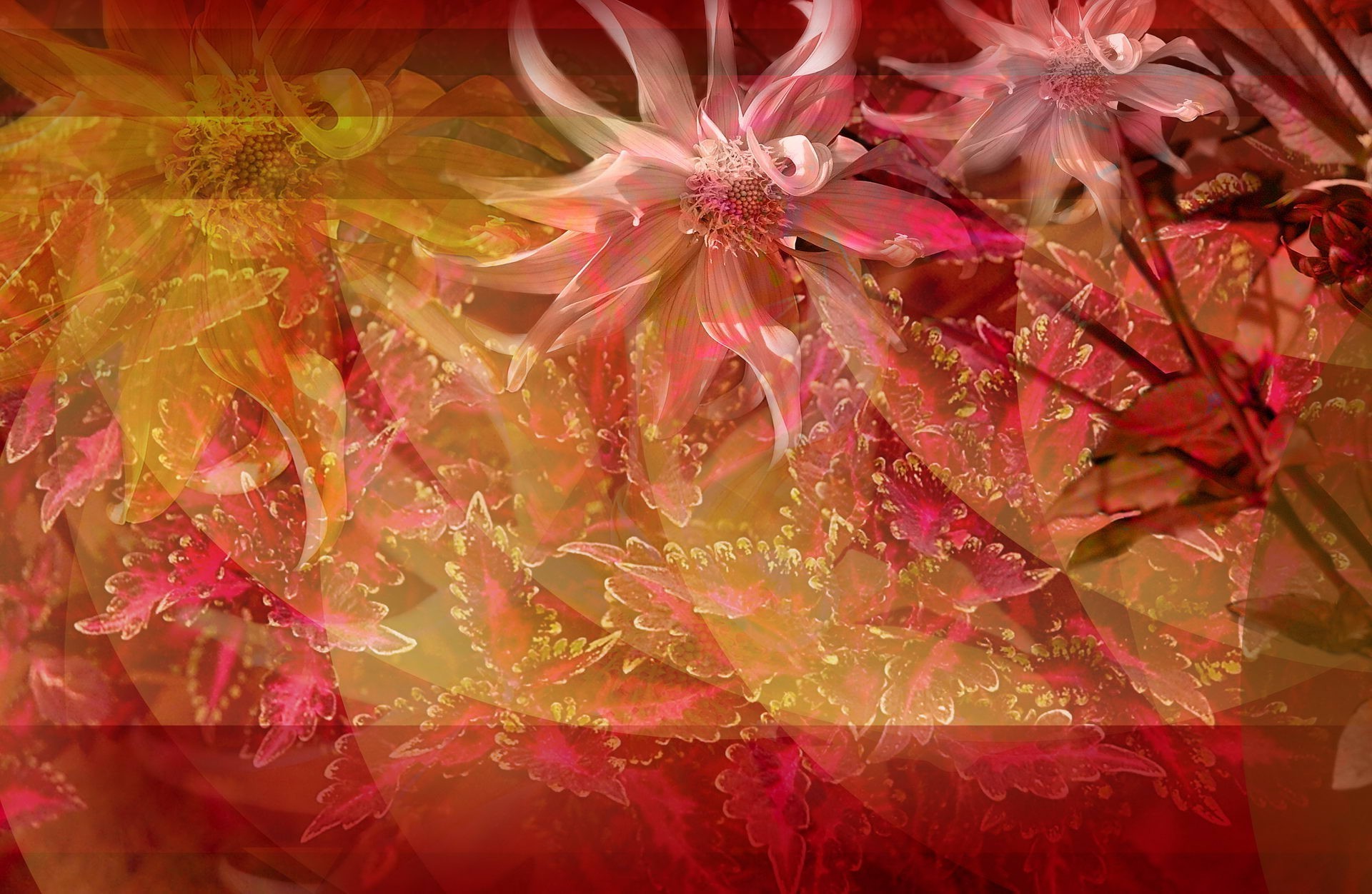 Abstraktion von Blumen auf rotem Hintergrund