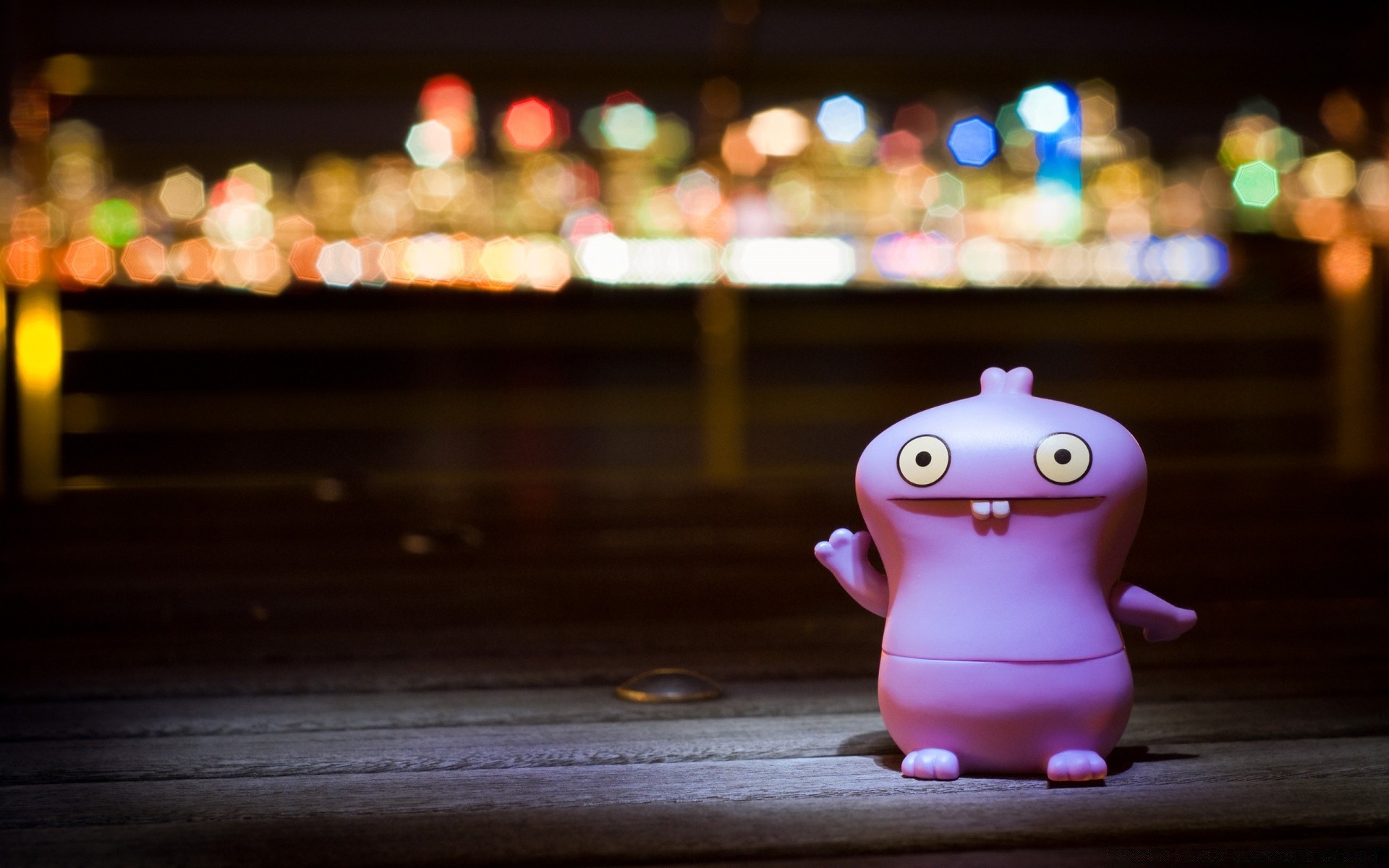 Spielzeug auf dem hintergrund der lichter der stadtSpielzeug auf dem Hintergrund der Lichter der Stadt