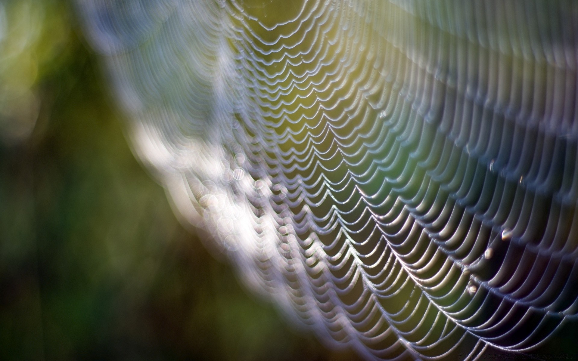 Tautropfen auf Spinnweben in Makroaufnahmen