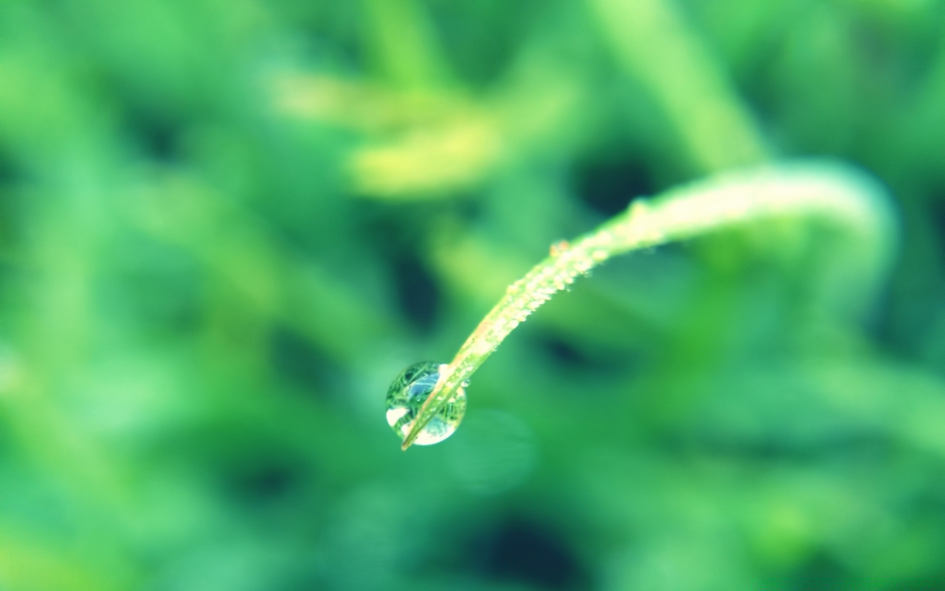 Ein Tropfen Tau am Morgen auf dem Grashalm