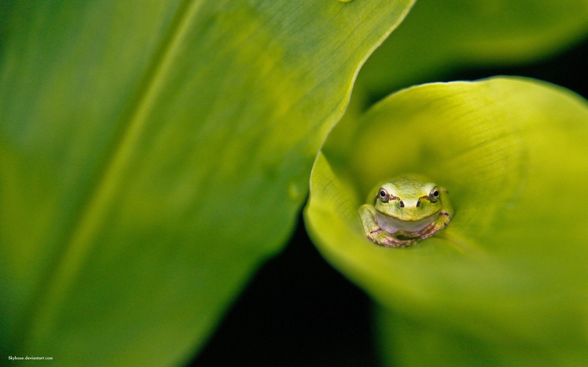 Der frosch versteckte sich in einem blatt der pflanze vor jemandemDer Frosch versteckte sich in einem Blatt der Pflanze vor jemandem