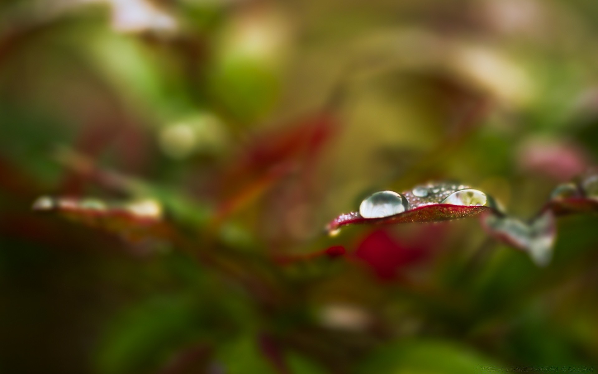 Tropfen der morgendlichen Rasse auf leuchtend grünen Blättern