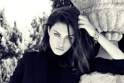 Schwarz-weiß-foto eines mädchens in einem amerikanischen caféSchwarz-Weiß-Foto eines Mädchens in einem amerikanischen Café