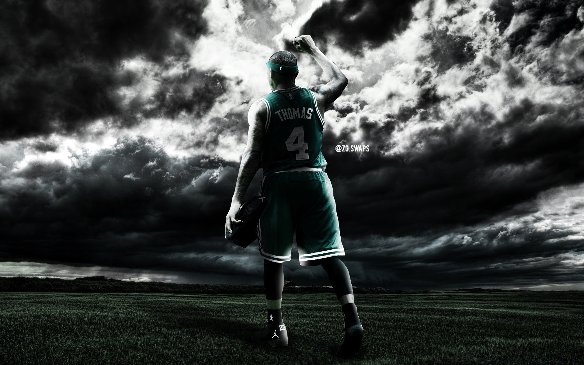 Basketballspieler vor dem Hintergrund eines Gewitters