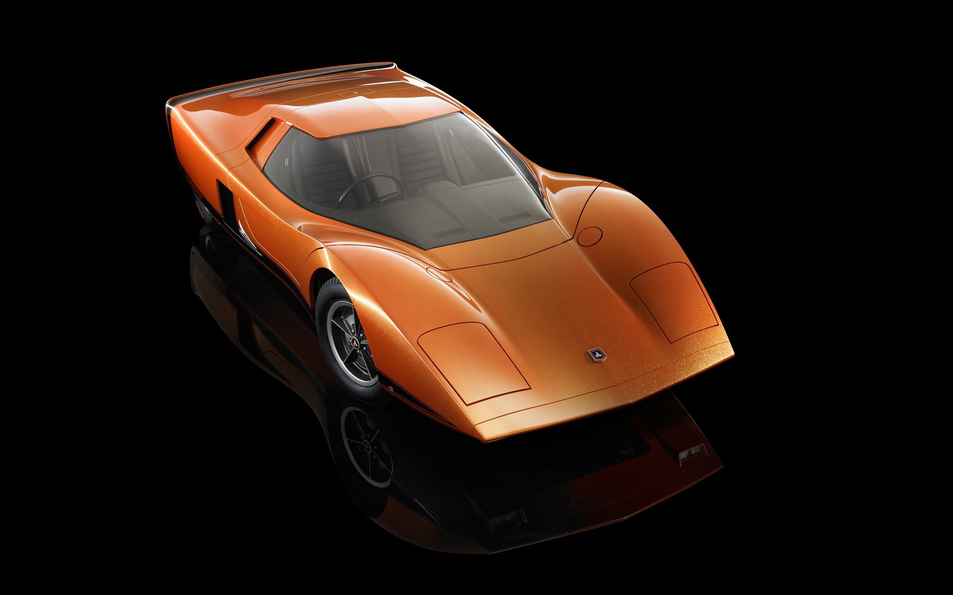 Sportwagen auf schwarzem Hintergrund Ansicht von oben