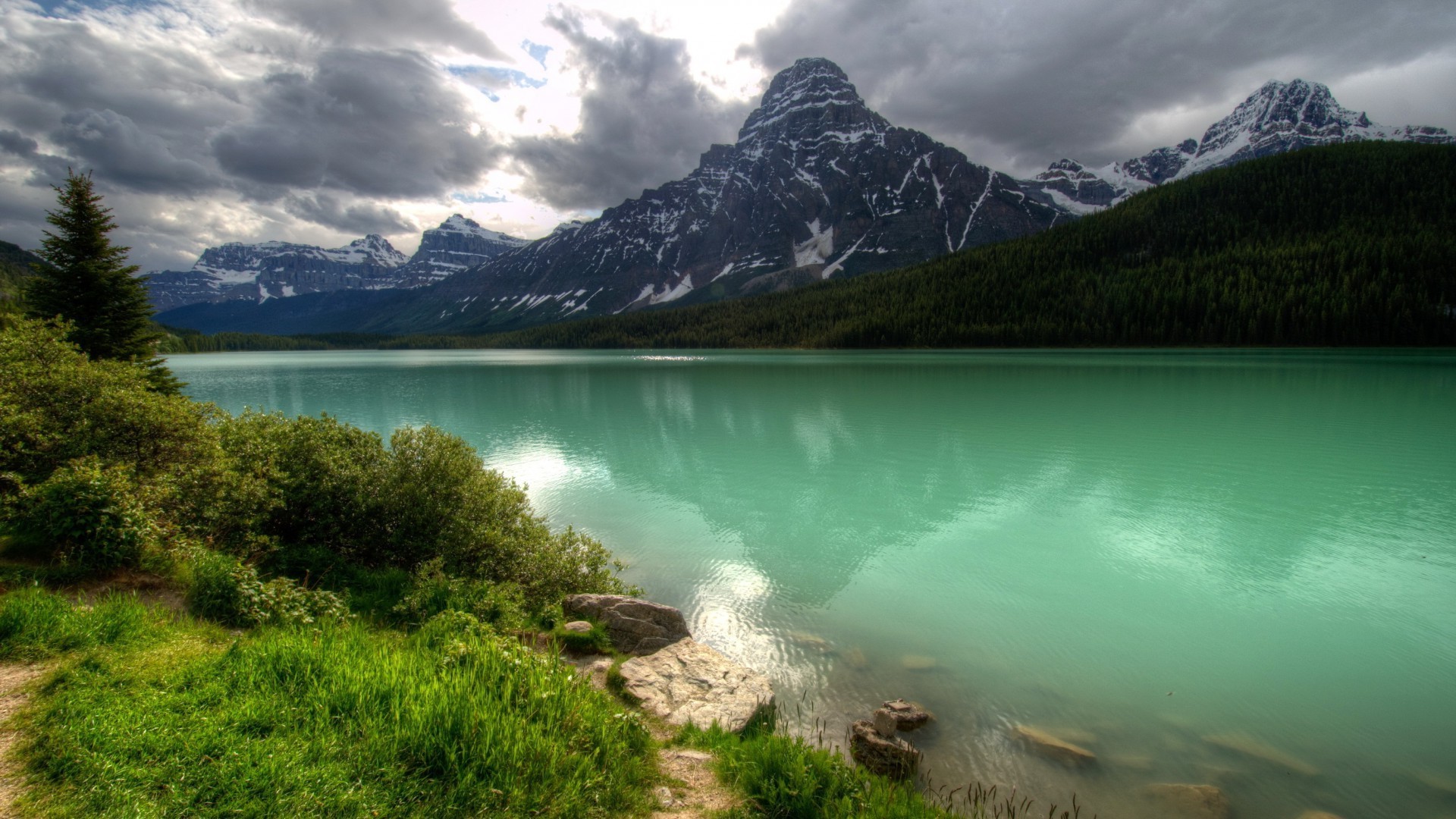 Schöner See vor dem Hintergrund der schneebedeckten Berge