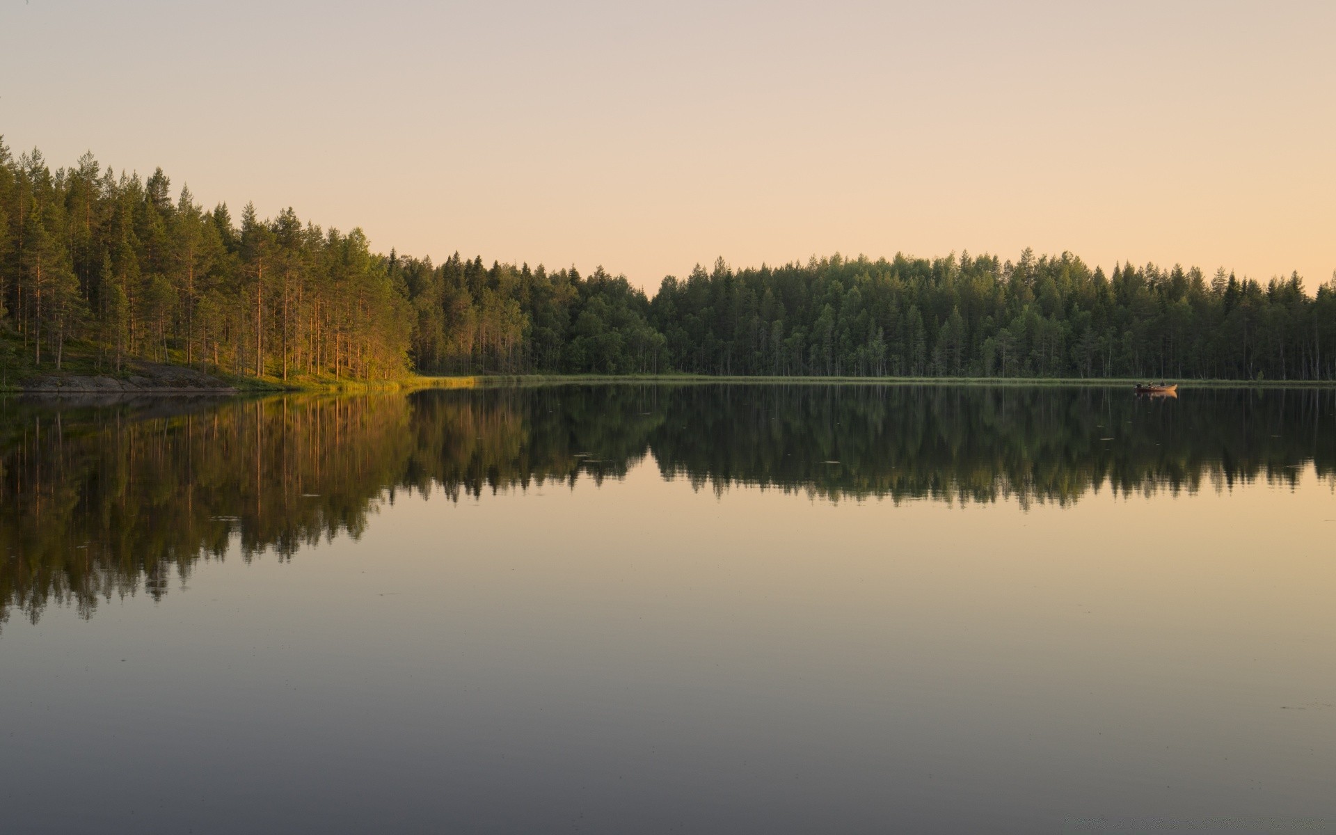 Ein quadratischer See an der Grenze eines dichten Waldes