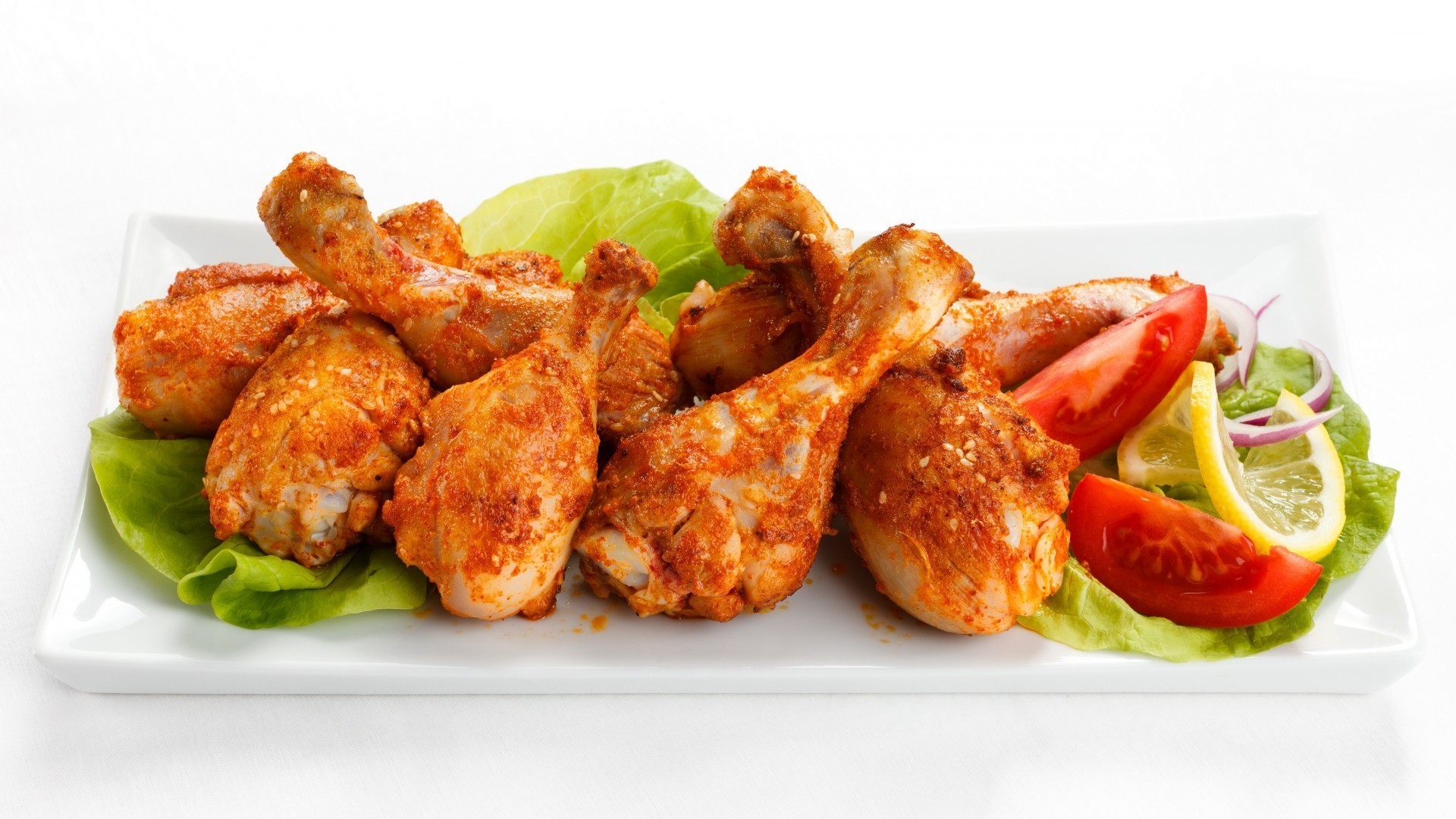 Leckere Flügel auf Salatblättern. Hühnerflügel servieren