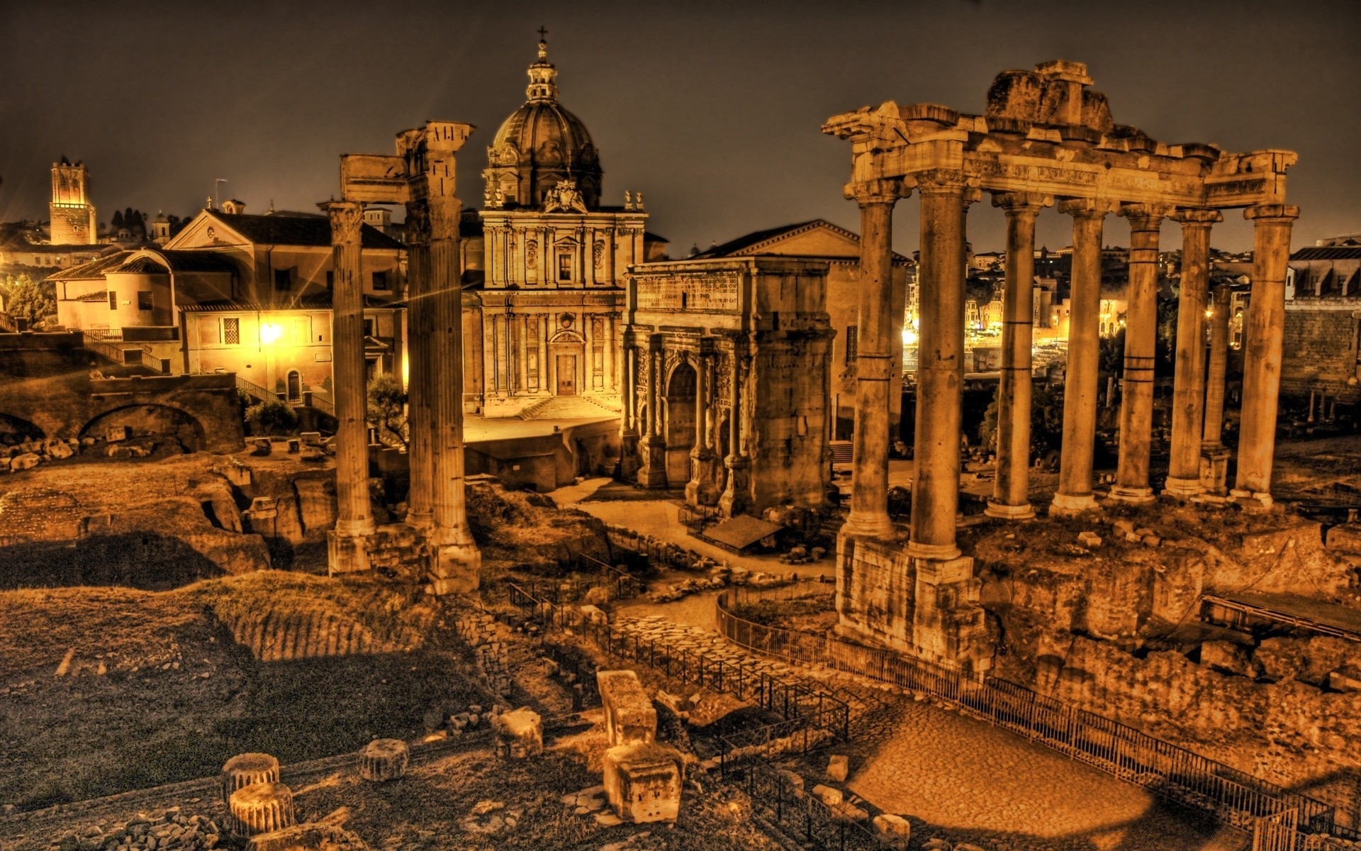 Eine Reise durch Europa, ein Sonnenuntergang inmitten alter Bauten