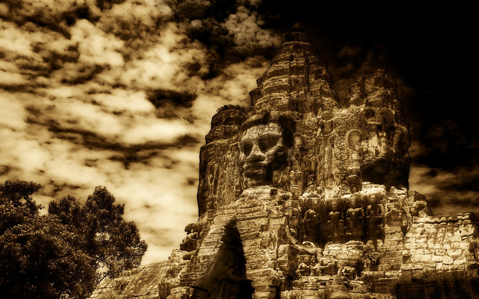Alter Tempel im Hintergrund des Sonnenuntergangs