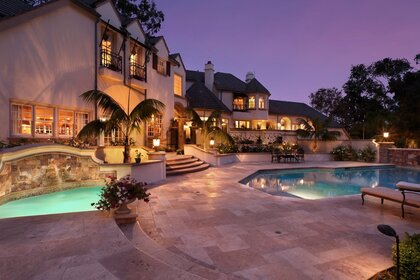 Schicke Aussicht auf das Anwesen mit Pool