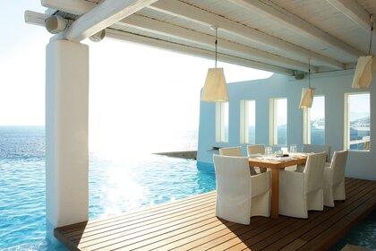 Das Hotel verfügt über einen Swimmingpool mit luxuriösem Interieur