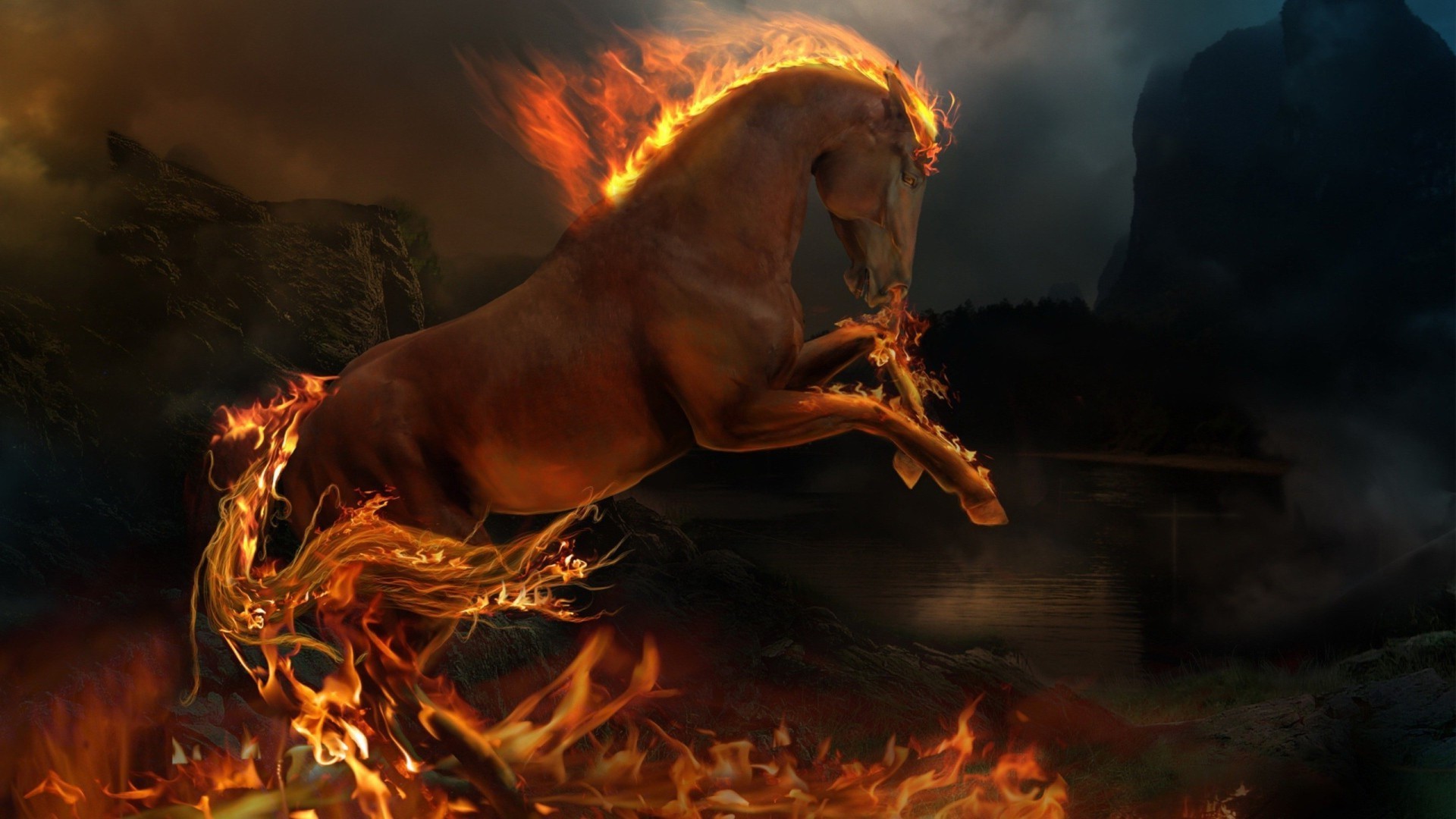 Das Symbol des Jahres. Das Jahr des feurigen Pferdes. Nestpferd mit brennender Mähne