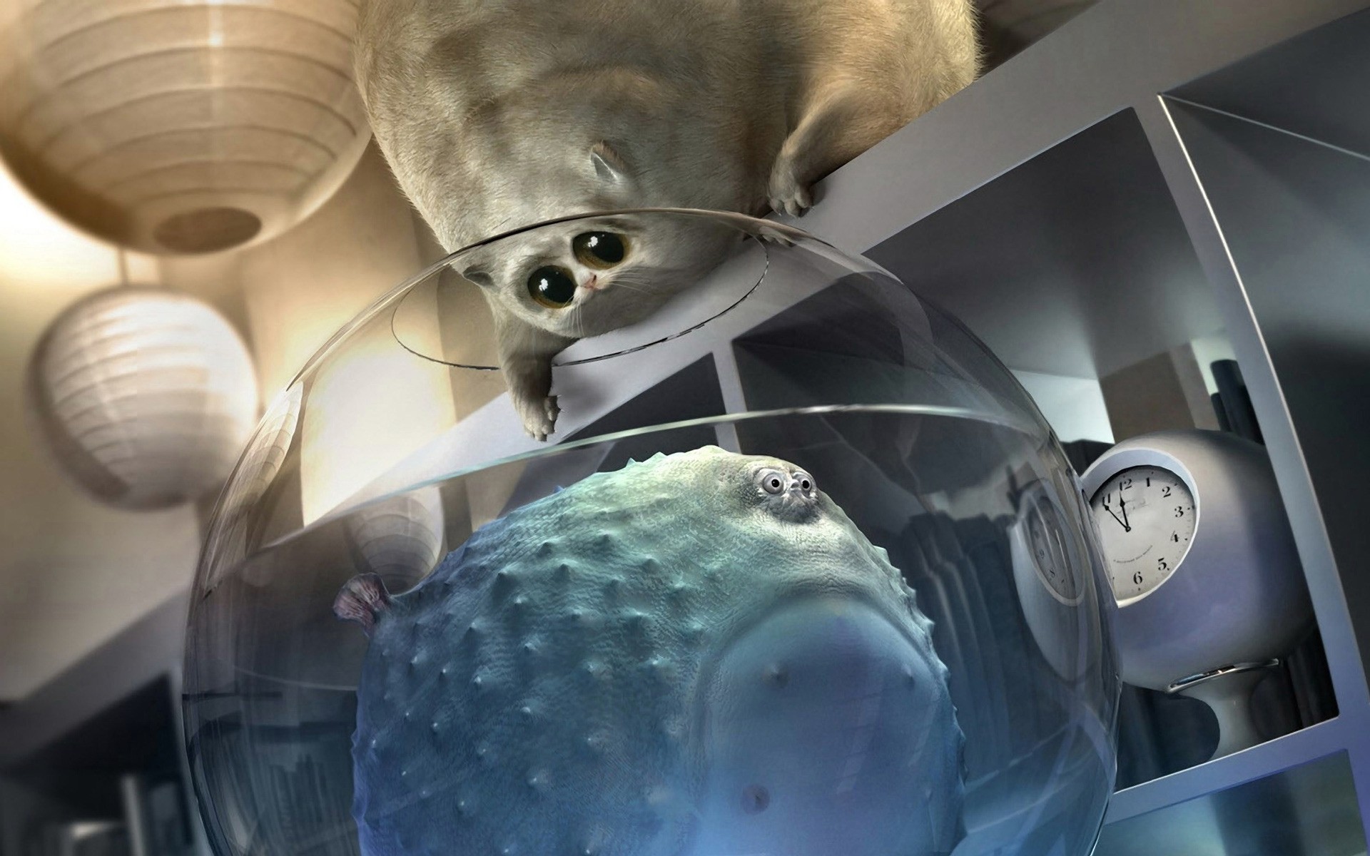 Weiße Schwäne und ihr Baby auf schwarzem Hintergrund