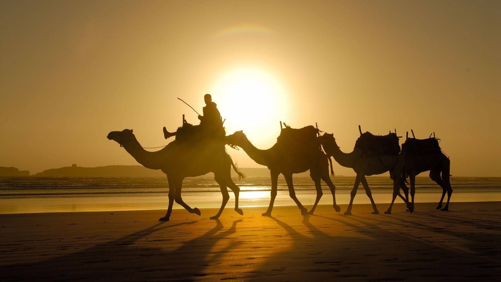 Wüste mit Kamelen auf dem Bildschirmschoner