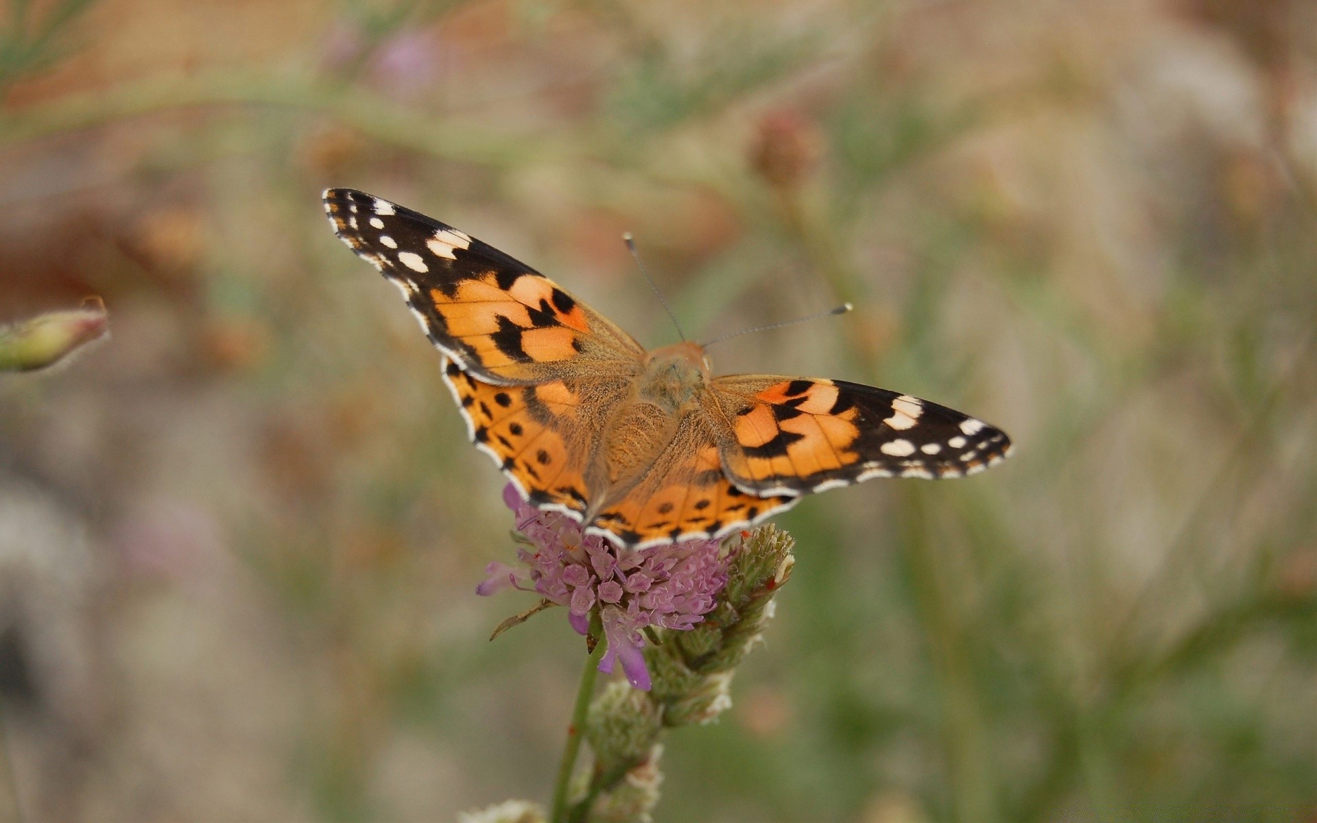 Ein orangefarbener schmetterling sitzt auf einer rosa blumeEin orangefarbener Schmetterling sitzt auf einer rosa Blume