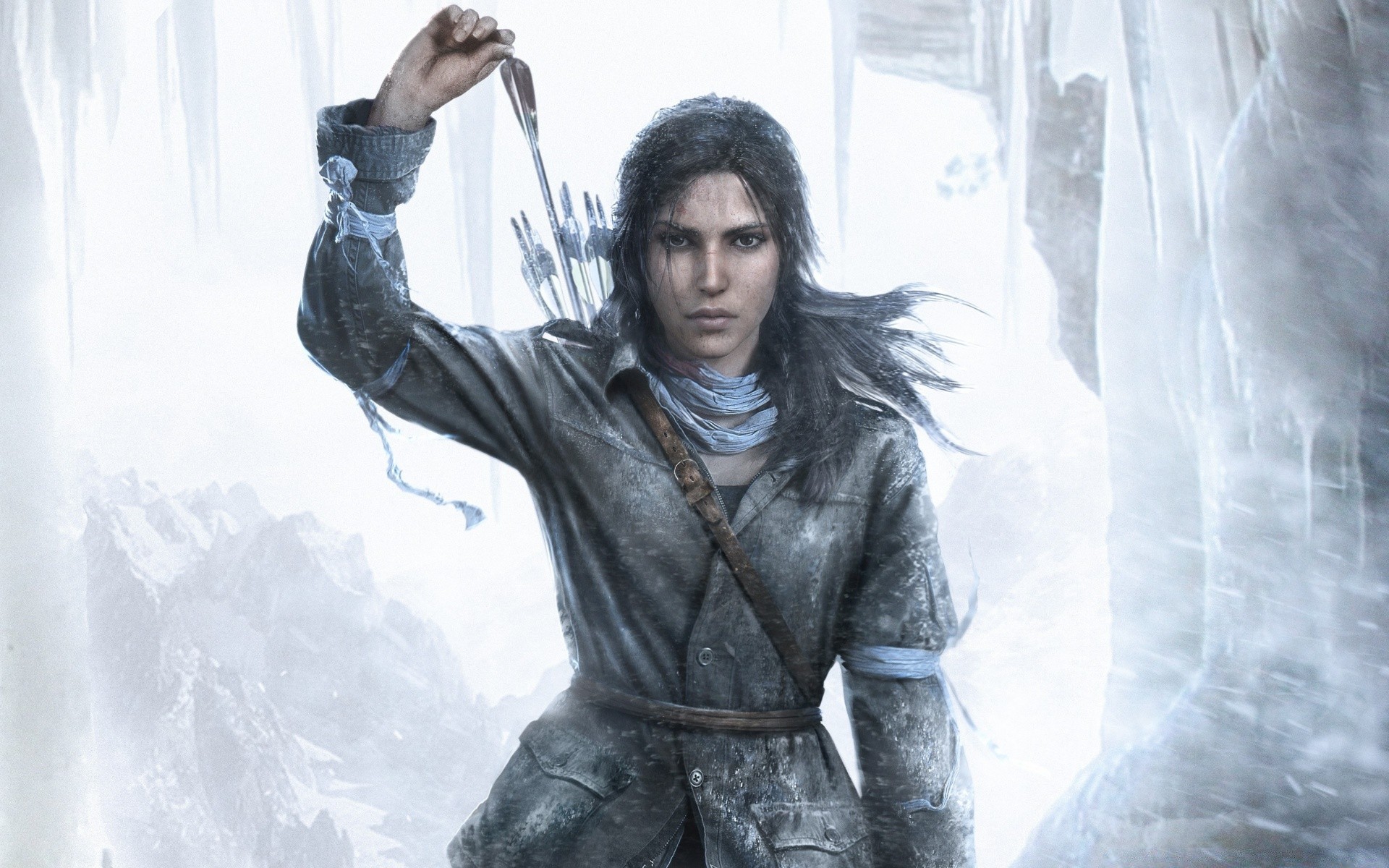 Lara Croft im Dschungel vor dem Hintergrund der Säulen