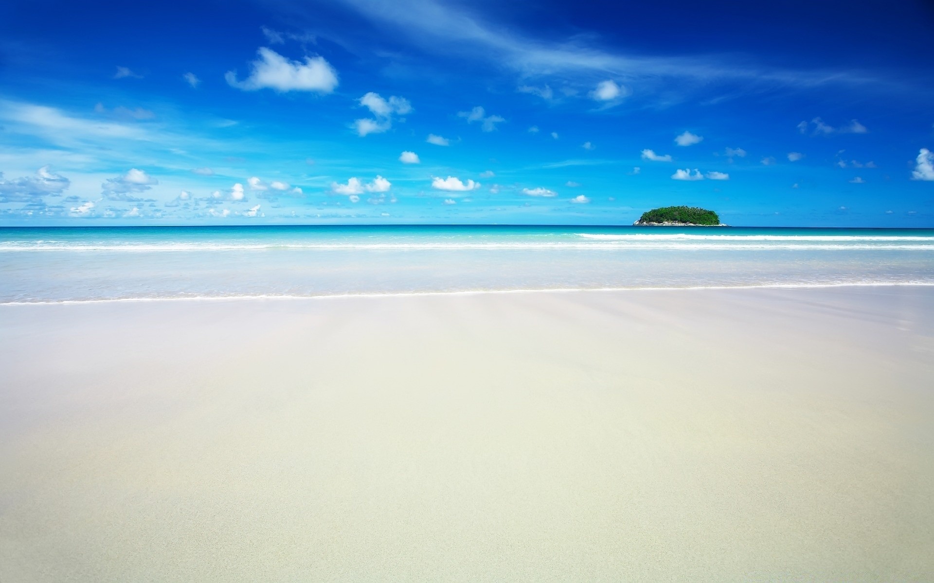 Sandstrand vor dem Hintergrund des blauen Himmels